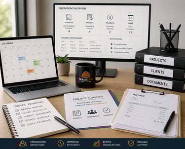Trade Ease Solutions provides administrative and operational support without the cost of hiring a full-time office team. Our service packages are designed for contractors, trades businesses, and project-based organizations that need reliable, structured support while maintaining flexibility and control over their operations.